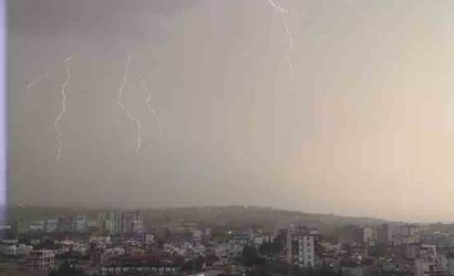 Hatay’ın İskenderun ilçesinde akşam saatlerinde başlayan sağanak yağış sırasında bir yıldırımın düşme anı cep telefonu kamerasına yansıdı.