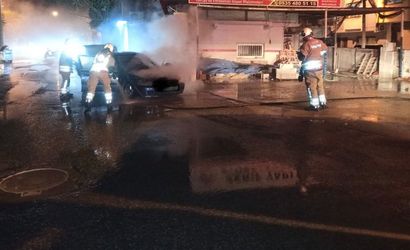 Hatay'ın İskenderun ilçesi Muradiye Mahallesi'nde seyir halindeyken motor bölümünde alevlenen bir otomobilde hasar oluştu.