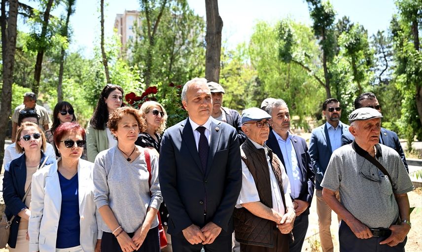 Cumhuriyet Halk Partisi (CH)P Genel Başkan Yardımcısı Suat Özçağdaş (sol2) ve beraberindeki heyet, Köy Enstitülerinin mimarı İsmail Hakkı Tonguç'u ölümünün 65. yıl dönümünde Cebeci Asri Mezarlığı'ndaki kabri başında andı.