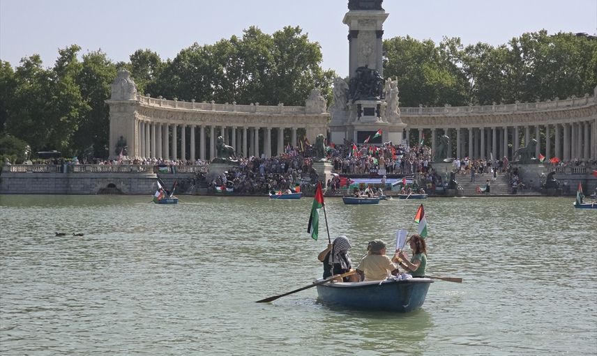 İspanya'nın başkenti Madrid'deki Retiro parkındaki Alfonso XII Anıtı önünde Filistin'e destek gösterisi düzenlendi. Parktaki suni gölde kayıklarla turlayan, Filistin bayrakları sallayan, İsrail karşıtı sloganlar atan İspanyollar, evlerinden getirdikleri kaşıklarla tencere ve tavalara vurarak tepkilerini gösterdi.