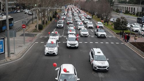 İspanya'da artan sigorta poliçeleri nedeniyle taksiciler, Madrid'de trafiği durdurarak protesto eylemi gerçekleştirdi.