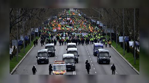 İspanyol çiftçiler, üç haftadır devam eden eylemlerinde traktörlerini bu kez de Madrid’deki Avrupa Parlamentosu’na (AP) yönlendirdi… Çiftçiler bağlı oldukları üç büyük sendika olan Asaja, COAG ve UPA, Brüksel’de yapılacak olan AB Ortak Tarım Politikası ile ilgili bazı kararların alınmasının beklendiğini…