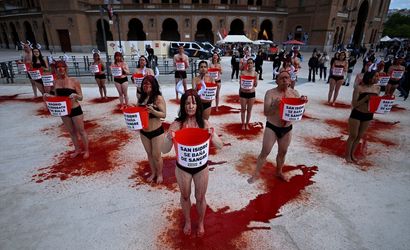 İspanya'da önde gelen hayvan hakları dernekleri, boğa güreşlerinin yasaklanması çağrısında bulunmak üzere başkent Madrid'deki Las Ventas Arenası önünde bir gösteri düzenledi. Özellikle Aziz Fermin Festivali'nin gerçekleştirilmesi ile paralel olarak yapılan bu eyleme katılan kalabalık grup, vücutlarına kırmızı boya dökerek dikkat çekti.