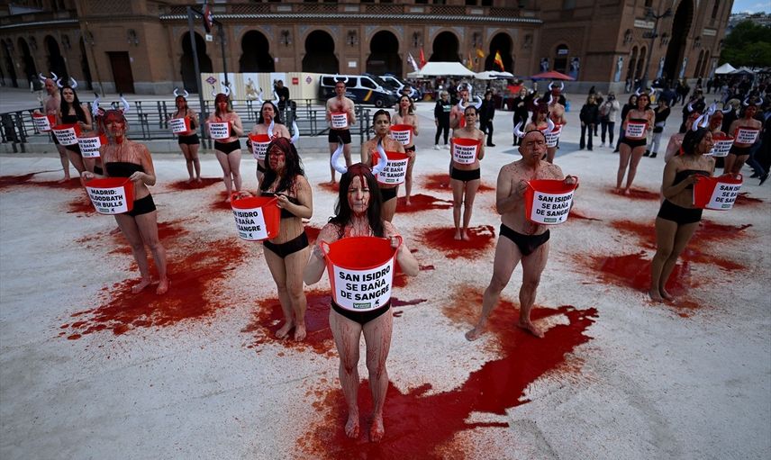 İspanya'da önde gelen iki hayvan hakları derneği Anima Naturalis ve CAS International, başkent Madrid'deki Las Ventas Arenası önünde boğa güreşi karşıtı gösteri yaptı. Aziz Fermin Festivali'nin yapıldığı hafta kapsamında Las Ventas'ta programlanan boğa güreşlerini protesto etmek üzere toplanan kalabalık grup, vücutlarına kırmızı boya döktü.