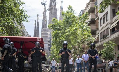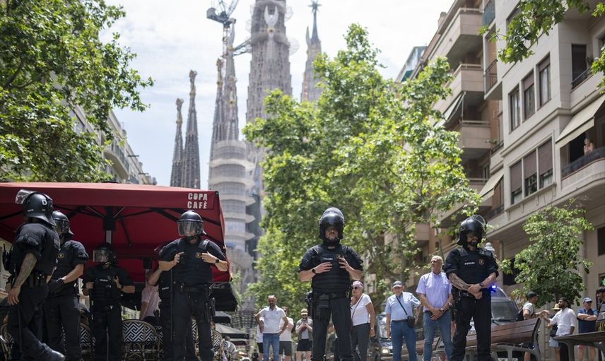 Polis, göstericilerin kentin önemli turistik değerlerinden Sagrada Familia Bazilikasına yürümelerine izin vermedi.