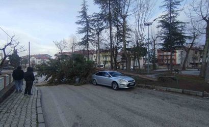 Yedişehitler Mahallesi’ndeki bir parkta bulunan ağaç, kuvvetli rüzgar nedeniyle kökünden sökülerek park halindeki bir otomobilin üzerine devrildi. Olayda şans eseri yaralanan olmadı, ancak otomobilde maddi hasar meydana geldi.