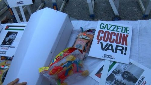 İsrail’in Gazze katliamına oyuncaklı protesto