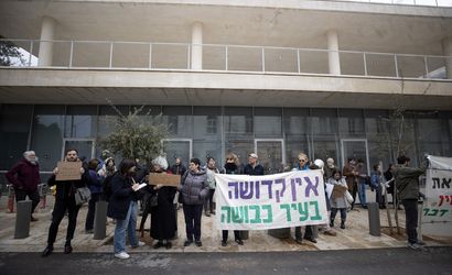 Gözaltılara tepki gösteren bir grup aktivist, duruşma önünde toplanarak protesto gösterisi düzenledi. Aktivistler, "Ödlekler kitaplara el koydu" ve "Filistin kitapları önemlidir" yazılı pankartlar taşıdılar.