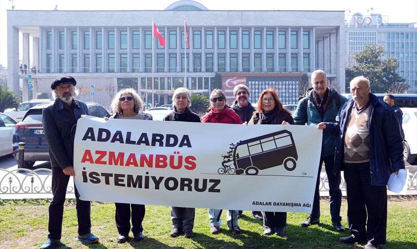 İETT'nin Adalar'da toplu ulaşım için kullandığı ve ada sakinlerinin "azmanbüs" olarak adlandırdıkları elektrikli minibüslere karşı İstanbul Büyükşehir Belediyesi (İBB) önünde eylem yapıldı. İBB karşısındaki parkta bir araya gelen, aralarında "Adalar Dayanışma Ağı" üyelerinin de bulunduğu grup, "Adalar'da azmanbüs istemiyoruz", "İETT Adalar'dan elini çek", "Adalar rant değil, koruma alanıdır" şeklinde sloganlar attı.