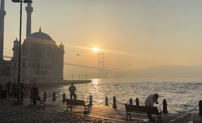 Fatih Sultan Mehmet Köprüsü, sis bulutları arasında kısmen kayboldu; köprünün çevresindeki siluetler, Boğaz'da oluşan sis tabakasının etkisini gözler önüne serdi. Bölgedeki sahil ve yaya alanlarında görülen bu manzaralar, fotoğraf meraklılarının ilgisini çekti.