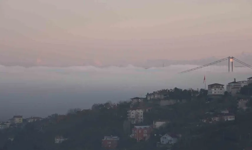 İstanbul Boğazı'nda sabah saatlerinden itibaren etkisini artıran sis, görüş mesafesinin önemli ölçüde azalmasına yol açtı. Fatih Sultan Mehmet Köprüsü, Boğaz boyunca yayılan sis tabakasının içinde kalarak büyük oranda görünmez hale geldi.