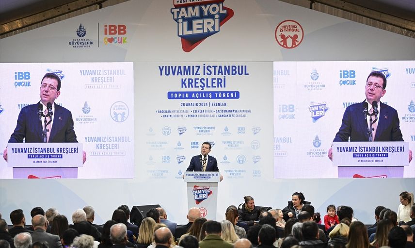 İstanbul Büyükşehir Belediyesince (İBB) yapımı tamamlanan 6 kreşin toplu açılışı gerçekleştirildi. İstanbul Büyükşehir Belediye Başkanı Ekrem İmamoğlu, Esenler'de düzenlenen programda konuşma yaptı.