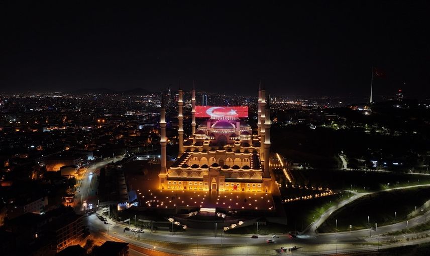 Fetullahçı Terör Örgütü'nün (FETÖ) 15 Temmuz 2016'daki darbe girişiminin 9. yılında İstanbul'daki camilerde sela okundu. Büyük Çamlıca Camisi'nden sela sesi yükseldi, mahyasına da Türk bayrağı yansıtıldı.