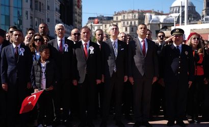 Gençlik ve Spor İl Müdürü Muhittin Özbay, Taksim Cumhuriyet Anıtı'na çelenk sundu. Törende, ayrıca saygı duruşunda bulunuldu ve İstiklal Marşı okundu.