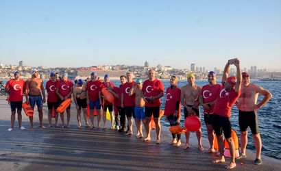 Zeytinburnu Yüzme Spor Kulübü üyeleri dayanışma için yaklaşık 20 kilometre kulaç attı