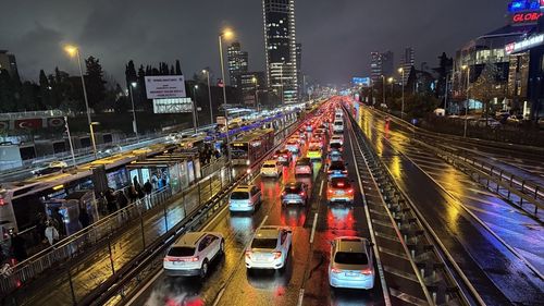 İstanbul'da akşam saatlerinde mesai bitimi ve yağış nedeniyle trafik yoğunluğu yüzde 90'a yükseldi.