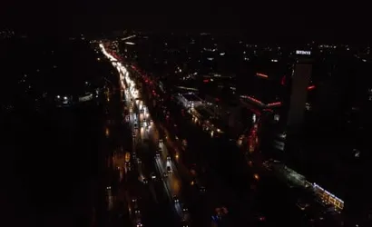 Cevizlibağ'daki araç yoğunluğu dron kamerasına yansıdı; görüntüler, bölgedeki yerel akışın ve uygulanan tedbirlerin izlenmesine katkı sağlıyor.