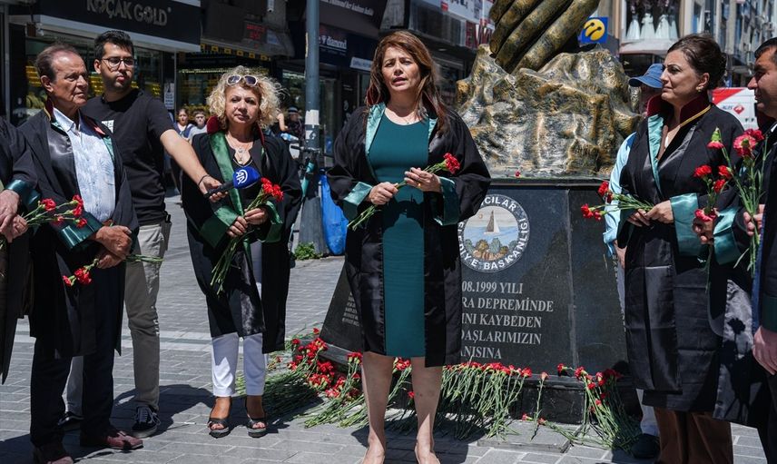 İstanbul Barosu avukatları, 17 Ağustos depreminin yıl dönümü nedeniyle Büyükçekmece'de basın açıklaması yaptıktan sonra, Avcılar'da bulunan deprem anıtına karanfil bıraktı.