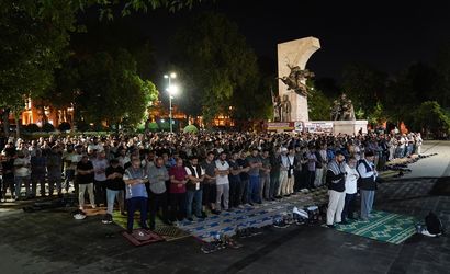 Gazze Dayanışma Platformu, İstanbul'un Fatih ilçesindeki Saraçhane Parkı'nda, İsrail'in saldırıları altında yaşayan Filistinliler için dua etkinliği düzenledi.
