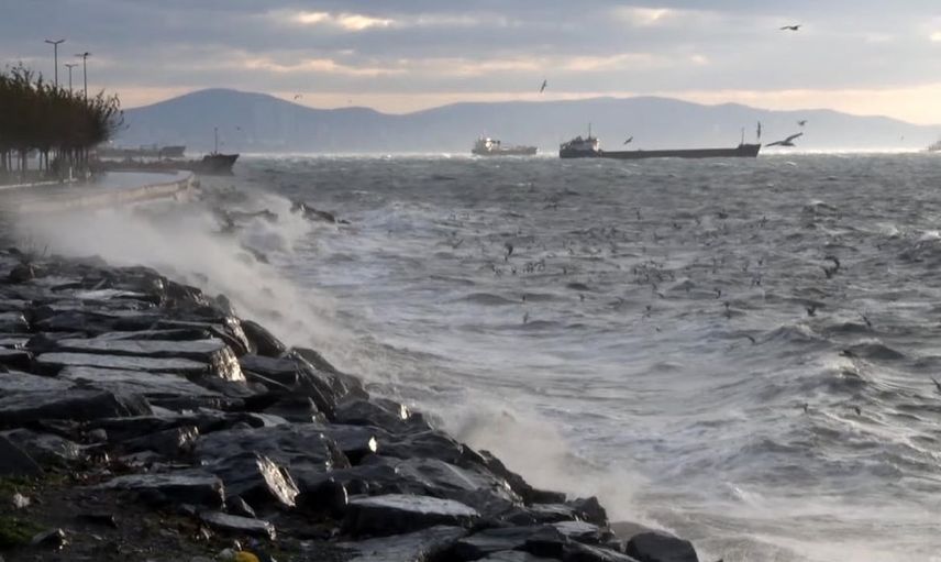 Meteoroloji Genel Müdürlüğü'nün uyarısının ardından İstanbul'da etkili olan fırtına, sabah saatlerinden itibaren kent genelinde hissedilmeye başladı ve denizde dev dalgalar oluştu.