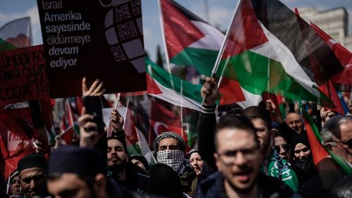İHH öncülüğünde düzenlenen yürüyüşte, İsrail'in Gazze'ye yönelik saldırıları protesto edildi.