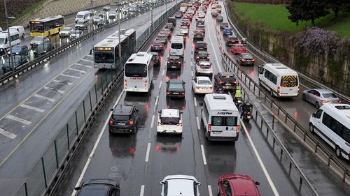 İstanbul'da Ramazan Bayramı sonrası yağışların etkisiyle trafik yoğunluğu yaşanıyor. Anadolu ve Avrupa Yakası'nda ulaşım aksıyor.