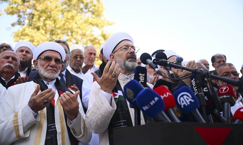 Erbaş ayrıca Filistin davasını "iman, ahlak ve vicdan meselesi" olarak niteleyerek, "Filistin coğrafyasını bir kene gibi yapışan bir mikrop gibi bulaşan zalimlerden kurtarmak zorundayız. Bunun için bütün Müslümanlar, bütün Müslüman devletler tüm vicdan sahipleri bir araya gelerek zalimleri durduracak ciddi kararlar almak, yaptırımlar uygulamak zorundayız." dedi.