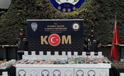 İstanbul'da düzenlenen operasyonda yurda kaçak yollarla sokulan çok sayıda cep telefonu aksesuarı ele geçirildi. Adreslerdeki aramalarda piyasa değerinin 750 milyon lira olduğu belirtilen 286 bin 285 cep telefonu kılıfı, 3 bin 321 kablosuz kulaklık, 945 powerbank, 1500 cep telefonu kartlığı, 12 bin 832 şarj seti, 1600 telefon çantası ve askısı, 14 bin 790 cep telefonu dönüştürücü kablosu ele geçirildi.