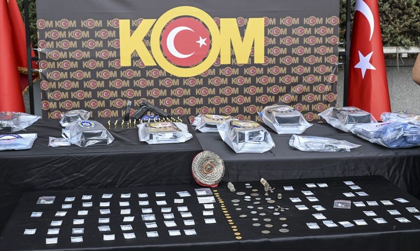 Eş zamanlı düzenlenen başka operasyonlarda ise 41 adres ve 23 iş yerine operasyon yapılarak 33 şüpheli yakalandı. Bu operasyonlarda ele geçirilen malzemeler arasında 1 kilo 373 gram 58 miligram değerli taş, 135 ziynet eşyası, bin 132 değerli maden taşı, 267 tarihi eser ve 64 dijital materyal bulunuyor.