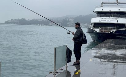 Galata Köprüsü'nde balık tutmaya devam eden Nurullah Genç ise, "Havalar şu an soğuk gidiyor ve bazen yağmur soğuğu kesiyor. Kestiği zaman dışarı çıkıyorum, buraya geliyorum balık tutmak için. Bazen yağmur bazen de dolu yağıyor. Her şeye rağmen hava güzel. Arada sırada büyük istavrit çıkıyor, güzel oluyor," şeklinde konuştu.