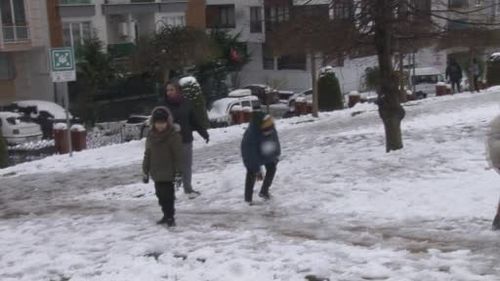 İstanbul'da gece başlayan kar yağışı yüksek kesimleri beyaza bürüdü; çocuklar ve aileleri sokaklarda kar topu, kızak ve oyunlarla keyifli vakit geçirdi.
