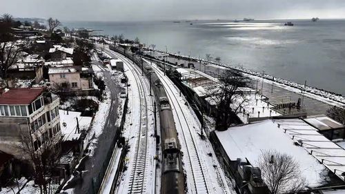 İstanbul'da etkili kar yağışı sonrası Küçükçekmece Menekşe sahili ve Gebze-Halkalı Marmaray hattının karla kaplı görüntüleri havadan kaydedildi.