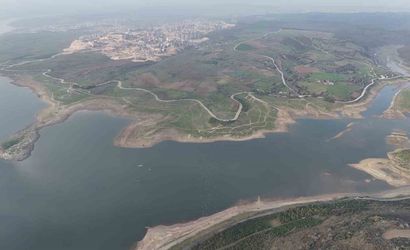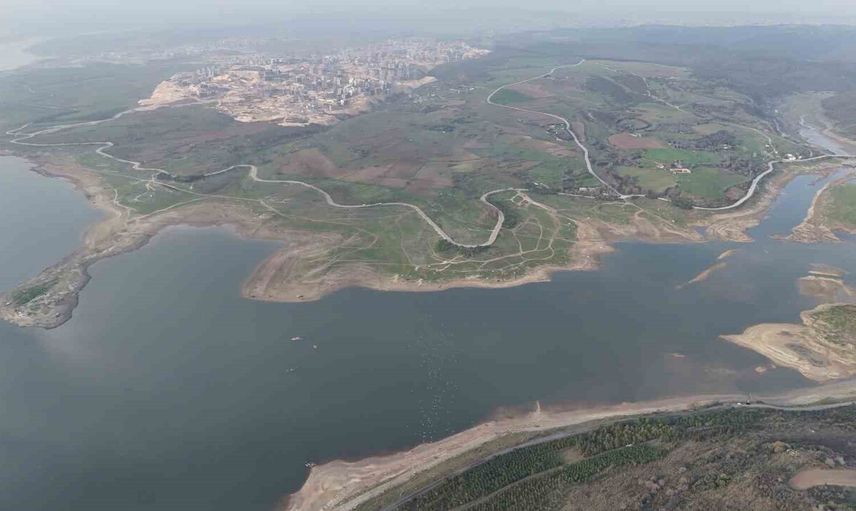 Megakent İstanbul'a su sağlayan Sazlıdere Barajı'nda su seviyesinin gerilemesi, kuraklığın en net görüntüsünü ortaya koydu. Havadan çekilen görüntülerde baraj gölünün büyük bölümünde suyun çekildiği, daha önce su altında kalan yapı ve kalıntıların belirgin şekilde yüzeye çıktığı görüldü.