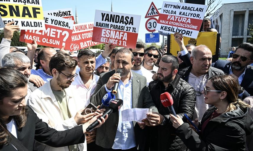 İstanbul'da İETT'ye bağlı özel halk otobüsü sahipleri, İstanbul Büyükşehir Belediyesi'nden (İBB) alacaklarını zamanında alamadıkları gerekçesiyle eylem düzenledi. Eylem, İBB'nin Saraçhane'deki başkanlık binası önünde yapıldı.