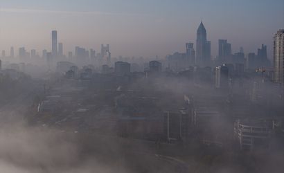 Ümraniye'de meydana gelen yoğun sis, plazaların ve gökdelenlerin kaybolmasına yol açtı.