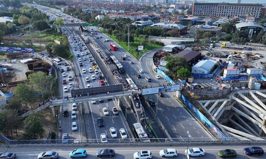 Toplu taşıma tercih eden bireyler, Mecidiyeköy Metrobüs Durağı'nda yoğun kalabalıklara neden oluyor. Aynı zamanda, D-100 kara yolunun Çağlayan mevkisinde de köprü yönünde yavaş ilerleyen araçlar dikkat çekiyor.