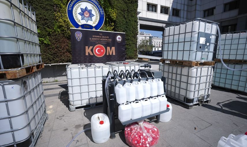 İstanbul'da düzenlenen sahte içki operasyonlarında 9 şüpheli gözaltına alındı. İl Emniyet Müdürlüğü Kaçakçılık Suçlarıyla Mücadele Şubesi ekiplerince yapılan aramalarda, içki üretiminde kullanılan 50 bin şişe ham madde, 18 ton 936 litre alkollü sıvı, 1250 içki şişesi, 920 boş şişe, 6 bin 800 etiket ve 3 bin kapüşon ele geçirildi.