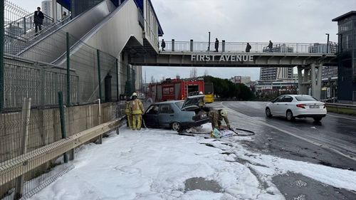 Büyükçekmece'de seyir halindeyken alev alan otomobil kullanılamaz hale geldi. Olay yerinde itfaiye ekipleri yangına müdahale etti.