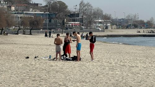 İstanbul'da hava sıcaklığının 20 dereceyi aşmasıyla vatandaşlar sahillere akın etti ve denize girdi.