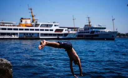 İstanbul'da sıcak havadan bunalanlar serinlemek için denizde yüzmeyi ve sahillerde dolaşmayı tercih etti. Bazı vatandaşlar, Sarayburnu çevresinde denize girdi.