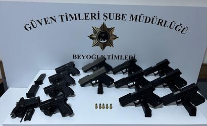 İstanbul'da silah ticareti yaptıkları iddia edilen 2 şüpheli gözaltına alındı. Evde yapılan aramada da 11 ruhsatsız silah ile 1 kurusıkı tabancaya el konuldu.