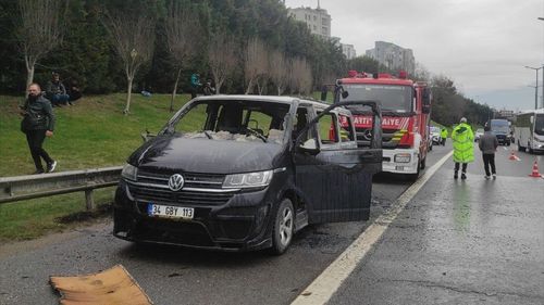 İstanbul'da TEM Otoyolu'nda seyir halindeyken yanan minibüs kullanılamaz hale geldi. Yangının sebebi henüz belirlenemedi.