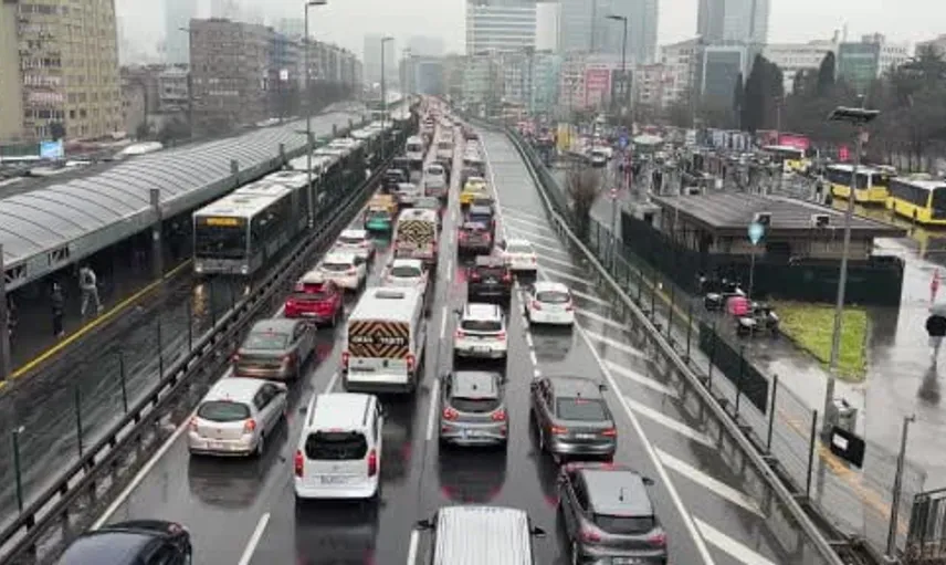 İstanbul'da yağışlı havanın da etkisiyle trafik yoğunluğu yüzde 81'e ulaştı