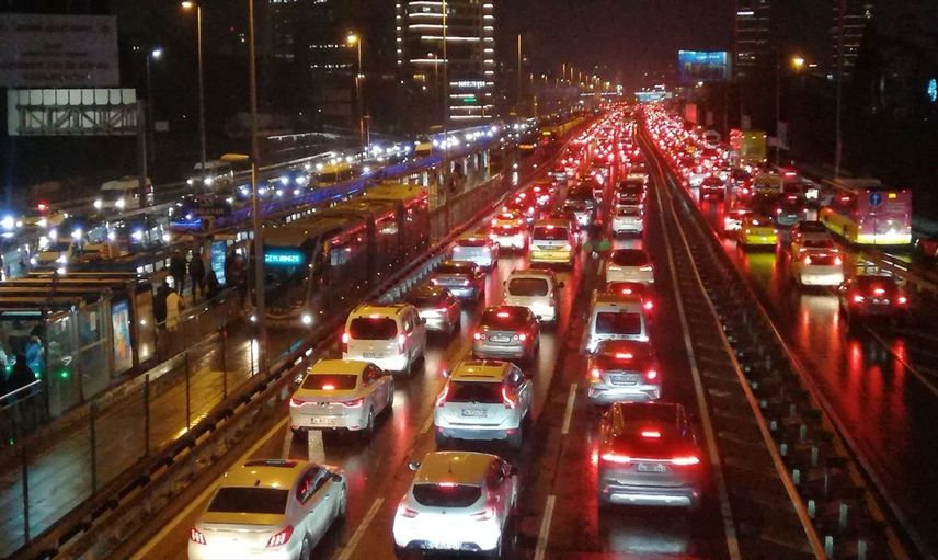 İstanbul'da vatandaşların işten çıktığı akşam saatlerinde yağışın da etkisiyle trafik yoğunluğu yaşanıyor. Kentin bazı bölgelerinde gün içinde belirli aralıklarla etkili olan yağış nedeniyle sürücülerin kontrollü ilerlediği görülürken, kimi noktalarda trafik yoğunluğu oluştu.