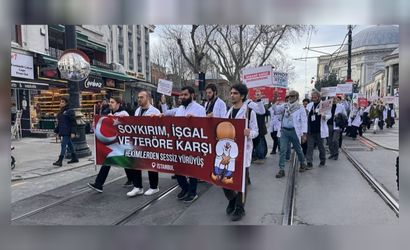 İstanbul Fatih’teki 2. Abdülhamit Han Türbesi önünde toplanan doktorlar, İsrail aleyhine Türkçe ve İngilizce yazılı pankartlarla yürüyüş düzenledi. Sultanahmet Meydanı’na kadar sessiz yürüyüş yapan sağlık sektörü çalışanları adına açıklamalarda bulunan doktor Hamza Ayaz, Gazze’deki savaşın bitmesini temenni ettiklerini kaydetti.