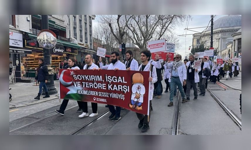 İstanbul’da çeşitli hastanelerde görev yapmaya devam eden sağlık çalışanları, doktorlar ve tıp fakültesi öğrencileri Gazze için sessiz yürüyüş yaptı.
