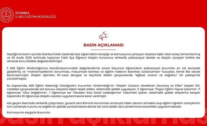 Açıklamada, Milli Eğitim Bakanlığı Ortaöğretim Kurumları Yönetmeliği’nin 164. Maddesi çerçevesinde, fiil-ceza dengesi ve ölçülülük ilkeleri gözetilerek; eğitsel, onarıcı ve sağaltıcı bir yaklaşım benimsendiği belirtildi. Buna göre; 2 öğrenciye Örgün Eğitim Dışına Çıkarma, 11 öğrenciye Okul Değiştirme ve 7 öğrenciye Okuldan Kısa Süreli Uzaklaştırma uygulanmasına karar verildi.