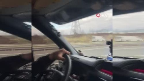 Hasdal-Kemerburgaz yolunda sabah saatlerinde ters yönde giden bir ticari aracın tehlikeli sürüşü, cep telefonu kamerasına yansıdı.