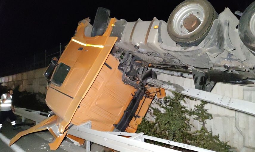 Bursa'nın Orhangazi ilçesinde meydana gelen kazada, Selami Tekdur (60) yönetimindeki tır, İstanbul-İzmir Otoyolu yakınlarında devrilerek refüje ters döndü.