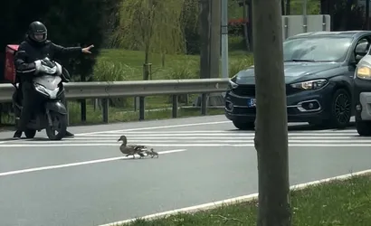 İstanbul'un Sancaktepe ilçesinde, bir sürücü akan trafiği kısa süreliğine durdurarak karşıdan karşıya geçen bir ördek ailesinin güvenliğini sağladı. O anlar trafikte bulunan başka bir vatandaş tarafından cep telefonu kamerasıyla kaydedildi.